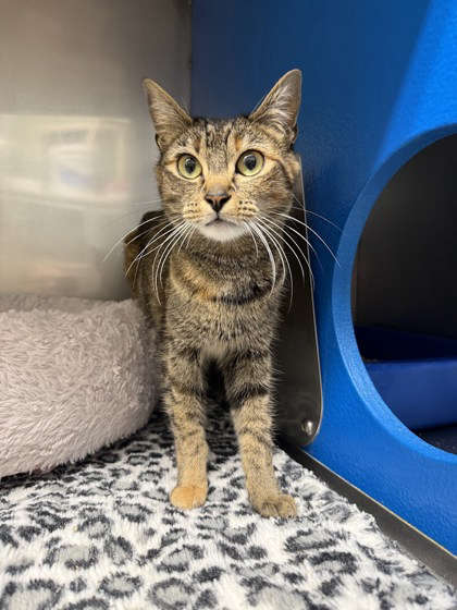 Echo is a soft, moody marshmallow who just wants two things in life: peace and a second dinner... maybe third. She's friendly in that "I'll sit near you but please respect my mystique" way, and she absolutely believes her food bowl should never echo back at her (empty bowls are an offense). She's polite, gentle, and enjoys window lounging, slow blinks, and supervising you from the couch. Echo is not demanding-she simply believes in proper grocery investment for a lady of refinement. She'd do best in a calm home where meals are reliable, cozy beds are plentiful, and her future humans accept that she may need just a bit more kibble than the average cat. Echo is sweet, dignified, and totally prepared to adore you... as long as her bowl stays stocked. Adopters must be willing to negotiate food portions with Her Majesty.