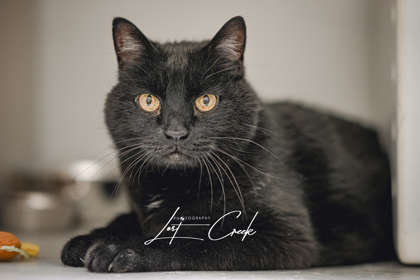 Meet Trip! The first thing you'll notice about Trip is that he's BIG - but it doesn't take long to realize he's an even bigger sweetheart. True to his name, Trip loves to rub against your legs and stay close by, sometimes getting a little underfoot as he follows you around for attention.Trip is friendly with people of all ages and has previously lived peacefully with a small dog and other cats. He's a mellow, easygoing companion who enjoys the simple things in life - especially mealtime! Because of his love for food, he would do best in a home where meals are portioned and not left out all day. As a senior boy, Trip has some arthritis in his hind end and takes a daily glucosamine supplement to help him stay comfortable and mobile. With that extra support, he's ready to enjoy a cozy home where he can relax, be adored, and share his gentle affection. If you're looking for a lovable, laid-back cat with a heart as big as he is, Trip might just be your perfect match.